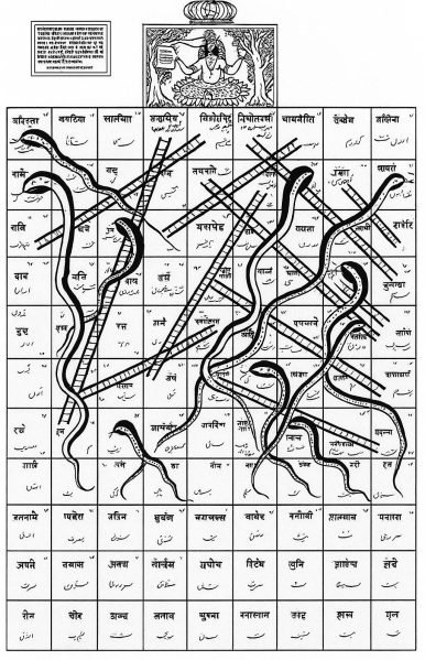 This game was played in medieval India, Nepal and this region, with boards explicitly mapping virtues and vices and final squares signifying merger with the Divine.